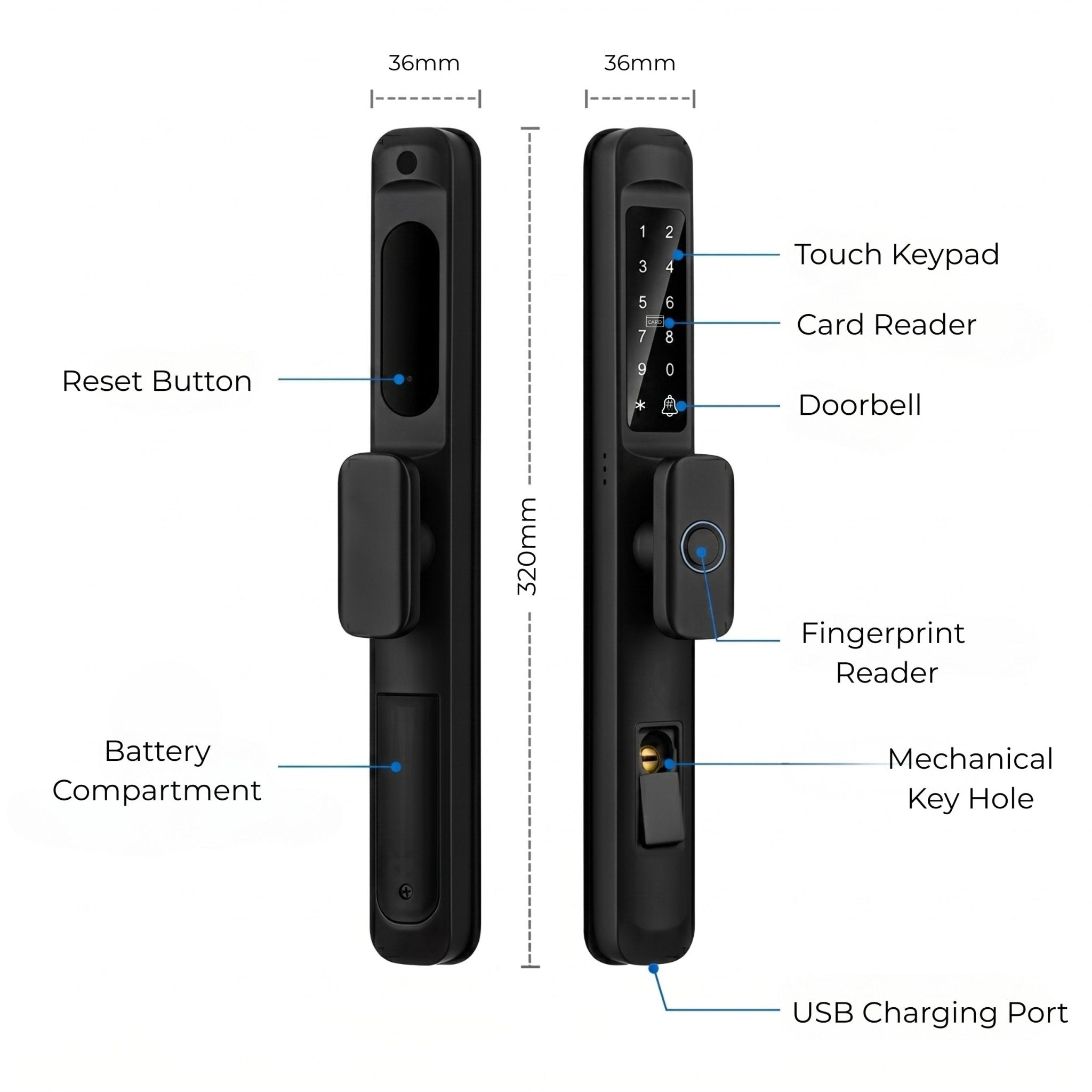 Smart Door Lock Slim  Knob Technical Datasheet & Specifications